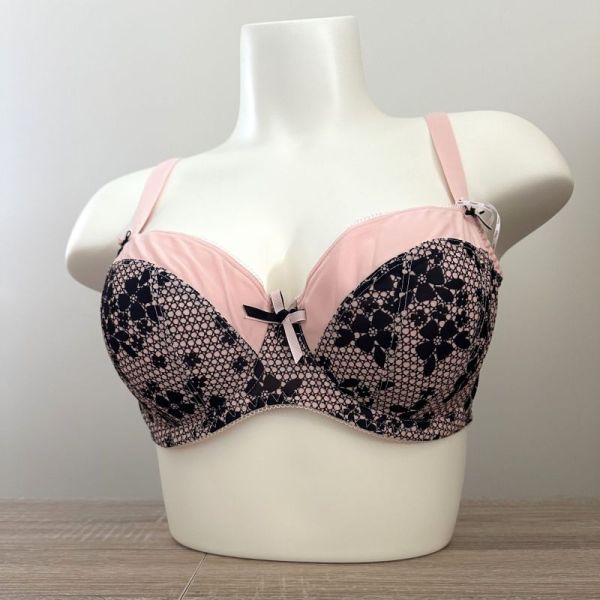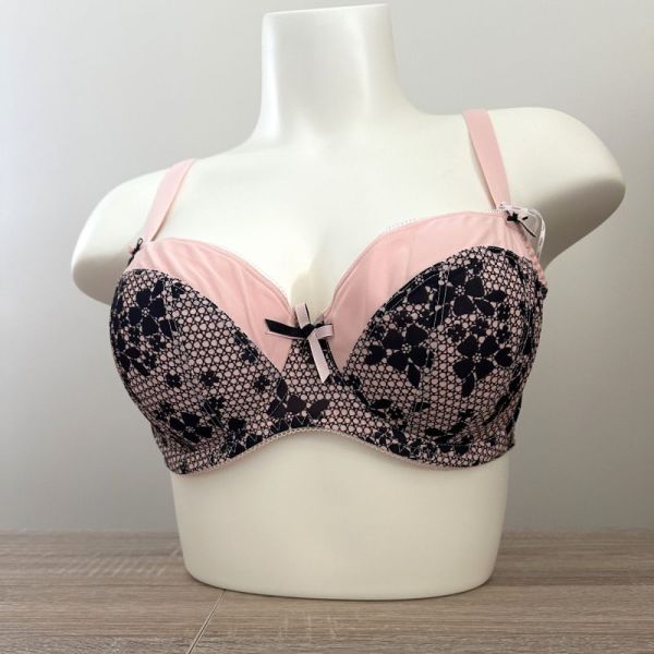Pensé pour sublimer les courbes généreuses, ce soutien-gorge allie confort absolu et élégance irrésistible. 💕 Son rose poudré doux contraste à merveille avec les détails en dentelle noire 🖤, pour une allure à la fois féminine et audacieuse.